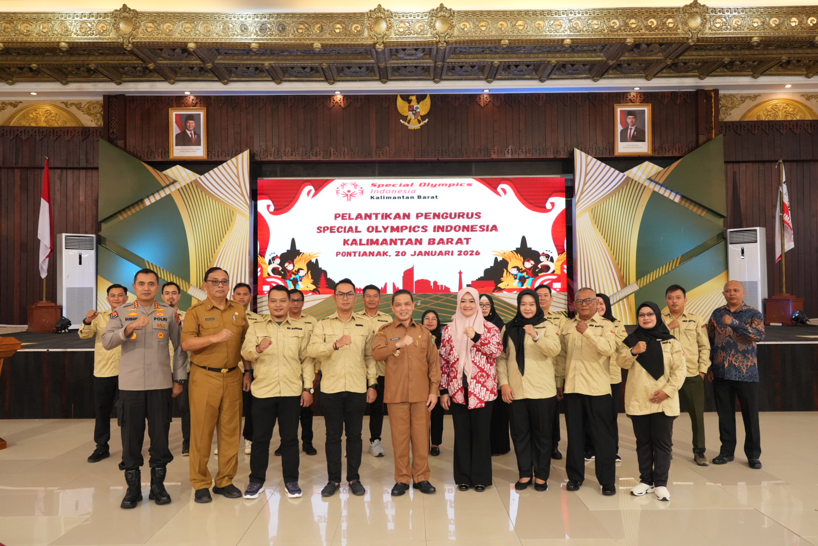PONTIANAK – Gubernur Kalimantan Barat, Drs. H. Ria Norsan, M.M., M.H., secara resmi menghadiri pelantikan Pengurus Provinsi Special Olympics Indonesia (SOIna) Kalimantan Barat masa bakti 2025–2029 yang dinahkodai oleh Stephani Yane, M.Pd., bertempat di Pendopo Gubernur, Selasa pagi (20/1/2026).
