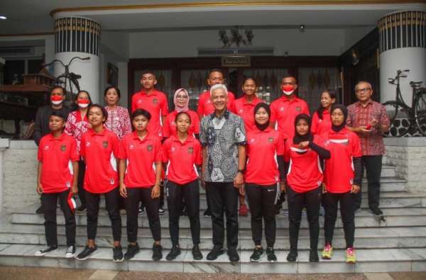 Sebelum berangkat, tim putri yang terdiri dari atlet-atlet beberapa kota di Jawa Tengah berpamitan ke Gubernur Jawa Tengah Ganjar Pranowo, Jumat (11/11) sore.